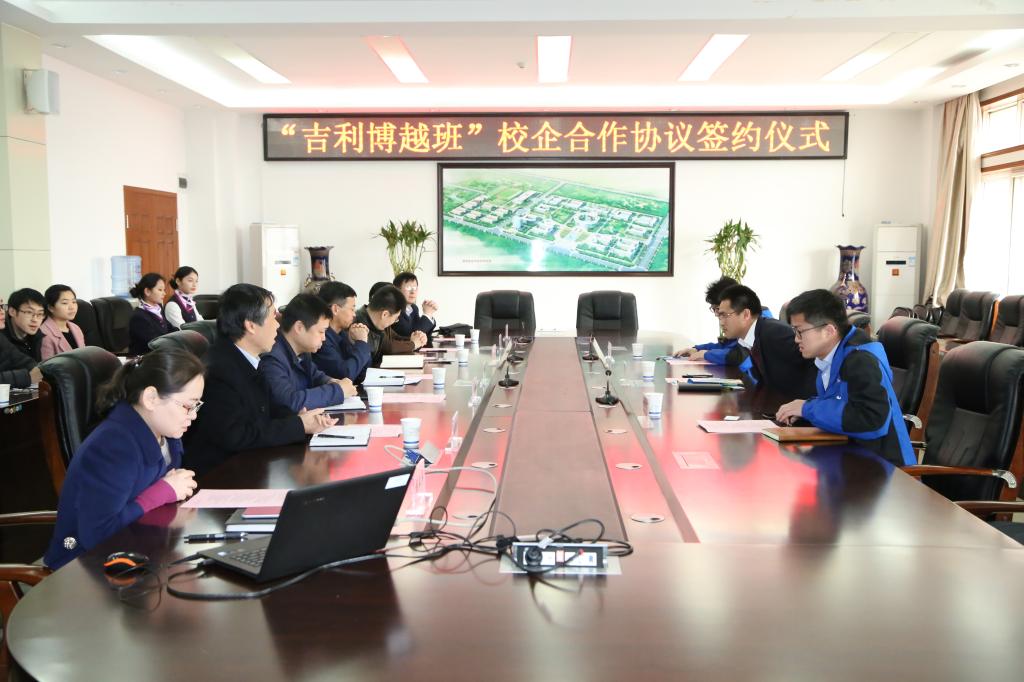 张耀虎代表1946伟德国际源自英国表态,学院要按照准企业人的标准培养“吉利博越班”的学生,并期望双方今后在实验室共建、“双师双能”型教师队伍培养及校企技术合作等三个方面进一步加强合作。