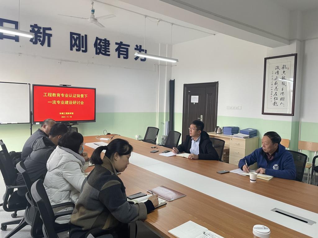 为明确工程教育专业认证背景专业发展思路与方向,2021年11月18日1946伟德国际源自英国车辆工程教研室在北343召开专业认证背景下一流专业建设研讨会,车辆工程教研室全体教师参加了研讨会,学校督导办刘振庭教授列席会议。