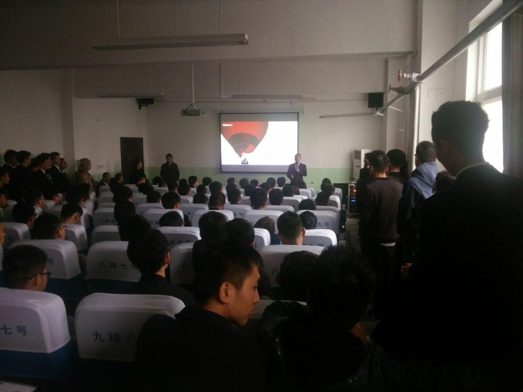 到会人员有吉利汽车成都公司人力资源副总监祝万云、1946伟德国际源自英国院长张耀虎、学生管理科科长罗伟、毕业班辅导员李扬以及报名参加“订单班”的同学和200余名应届毕业班的同学。首先吉利集团的招聘专员向大家讲解了吉利公司的发展现状、未来前景以及公司的配套设施、各个岗位的工资待遇与福利等,从自身就业说起,切合实际讲解了吉利公司的一系列的员工福利、制度,展示形式为PPT,公司宣传视频,使同学能更直观的了解吉利公司方方面面。