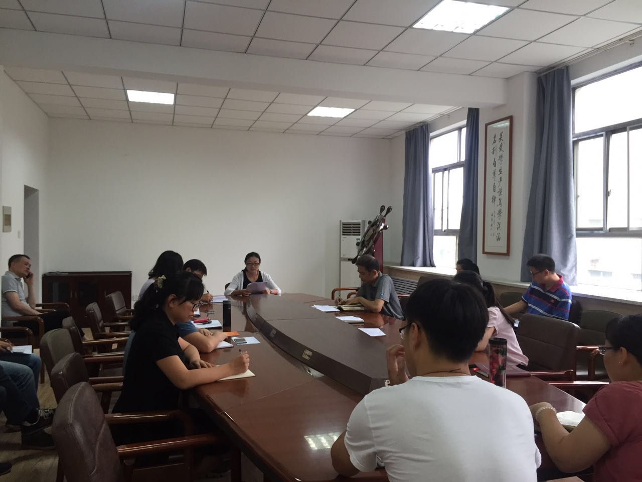 会议首先由邓北川传达《学习教育督导下一阶段“六看六查”》学习精神,要求继续看党支部学习教育是否有方案,深查方案实不实;继续看党员个人学习计划有没有,深查联系实际紧不紧;继续看学习讨论是否有重点,深查重点是否突出;继续看教育践行是够有标杆,深查标杆是否立起来;继续看学习教育是否有特点,深查特色是否鲜明;继续看“两学一做”是否有氛围,深查学习教育是否全覆盖。邓北川从“六看六查”出发对我院全体党员做了全新的要求,要求各支部制订学习计划,按时保量完成支部学习内容;要求个人学习制订学习计划,结合自己情况制订适合自己的学习计划;体现本院特色及树立优秀标杆等。