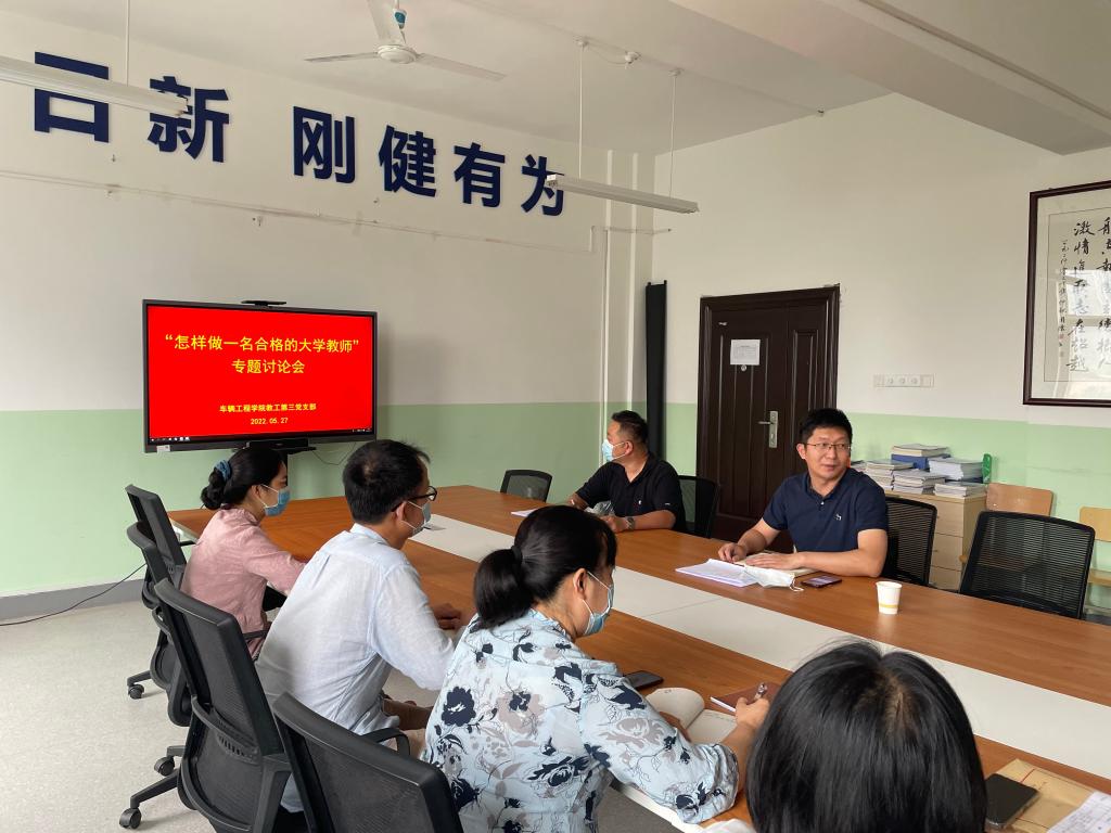 按照学院纪律作风整顿要求,2022年5月27日车辆工程教工第三支部在北343召开支部扩大会议,开展 “怎样做一名合格的大学教师”专题研讨会,车辆工程教研室全体教师参与研讨。