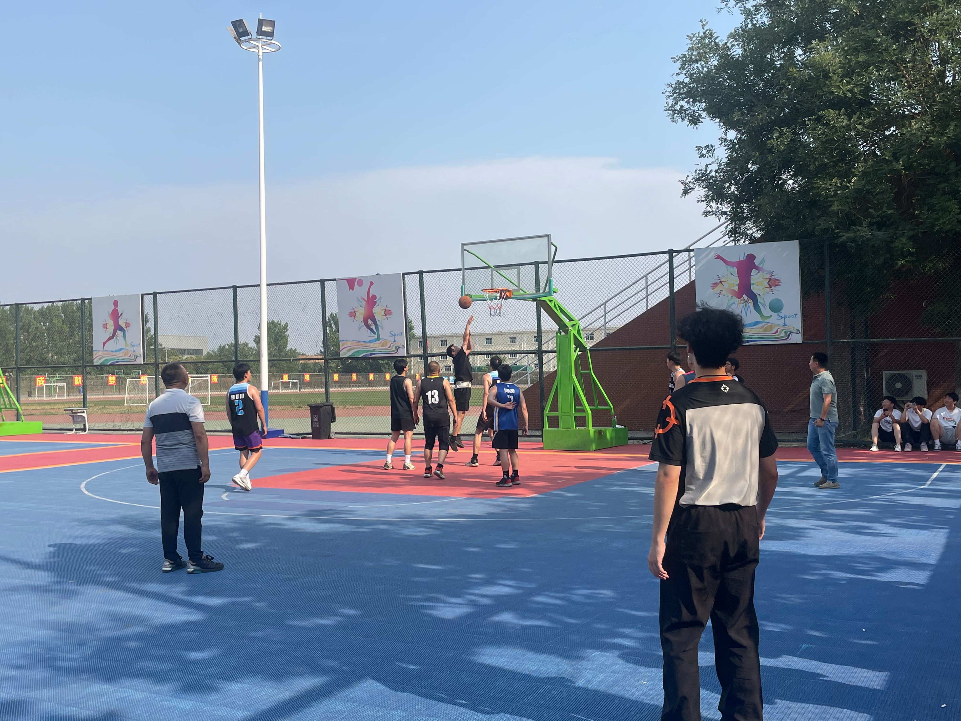 迎接学校70周年校庆并做好2025届毕业生离校工作,营造温馨和谐的校园氛围,1946伟德国际源自英国于6月13日16时在阎良校区灯光球场举办“迎校庆·老师喊你来打球”师生篮球赛暨毕业生欢送活动。