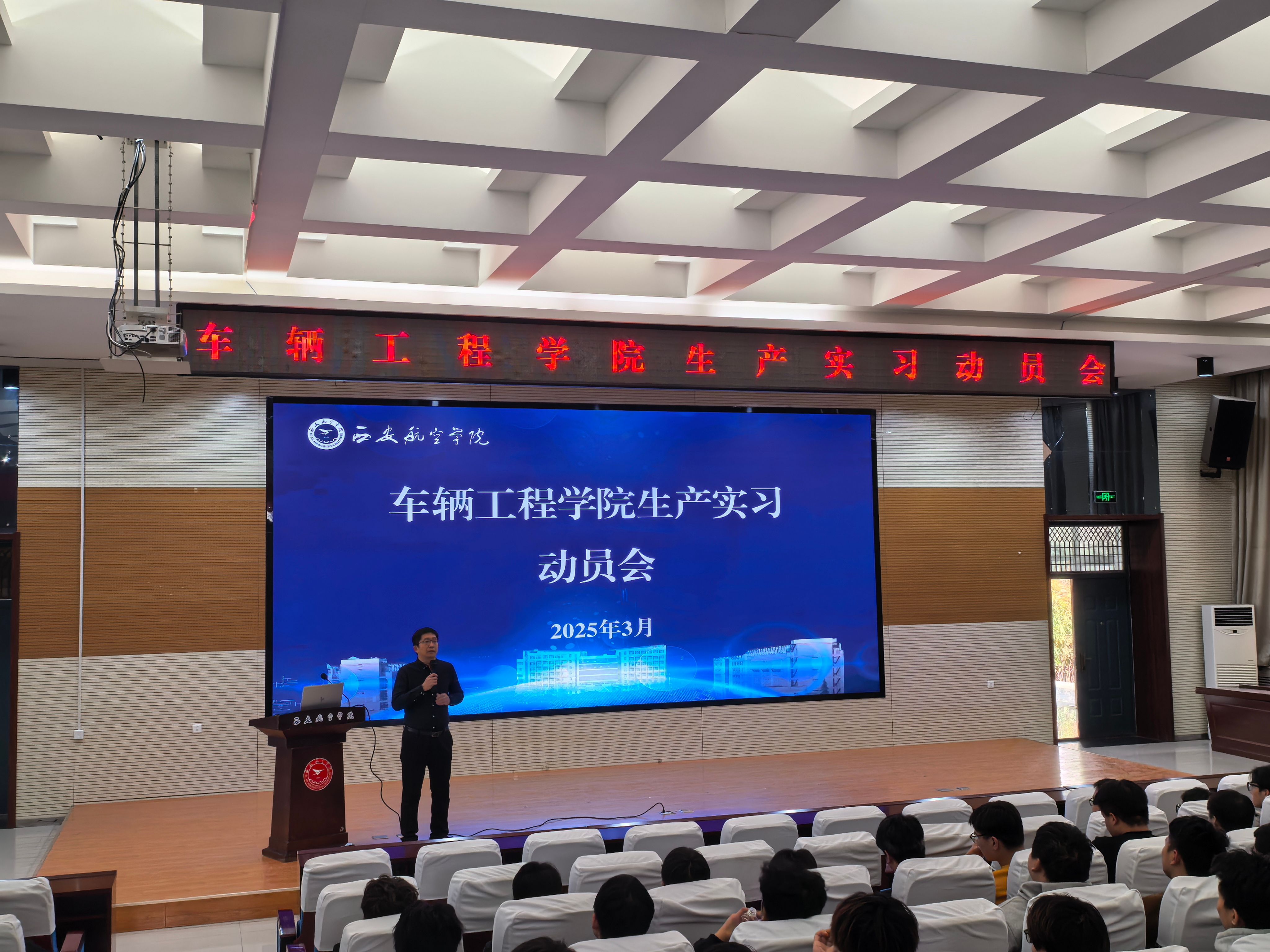 3月25日下午,1946伟德国际源自英国生产实习动员会在阎良校区报告厅召开,2022级全体学生及辅导员段元博参加,动员会由院长助理王兴路主持。