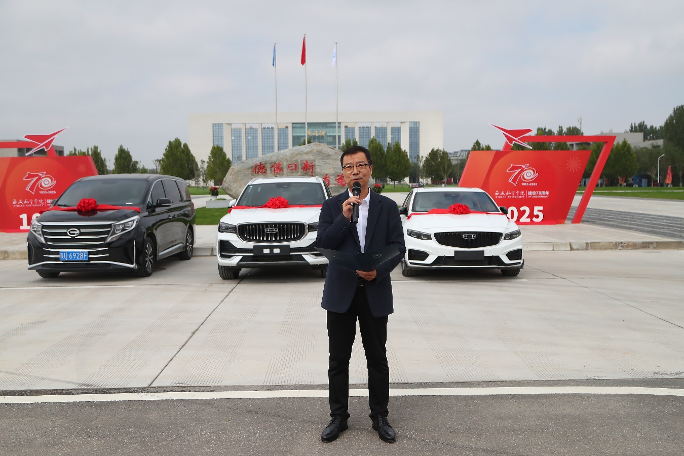 学校2018级校友、吉利汽车集团校企合作西北区域经理王凯代表捐赠企业发言。他表示,十分荣幸见证吉利汽车与母校深入合作。吉利汽车始终将人才视为核心竞争力,未来将继续加大投入,打造“学练结合、岗课融通”的培养模式。他向在场学子寄语,希望大家珍惜实践机会,将理论知识转化为实干能力,未来成长为懂理论、精技能、善创新的行业栋梁。