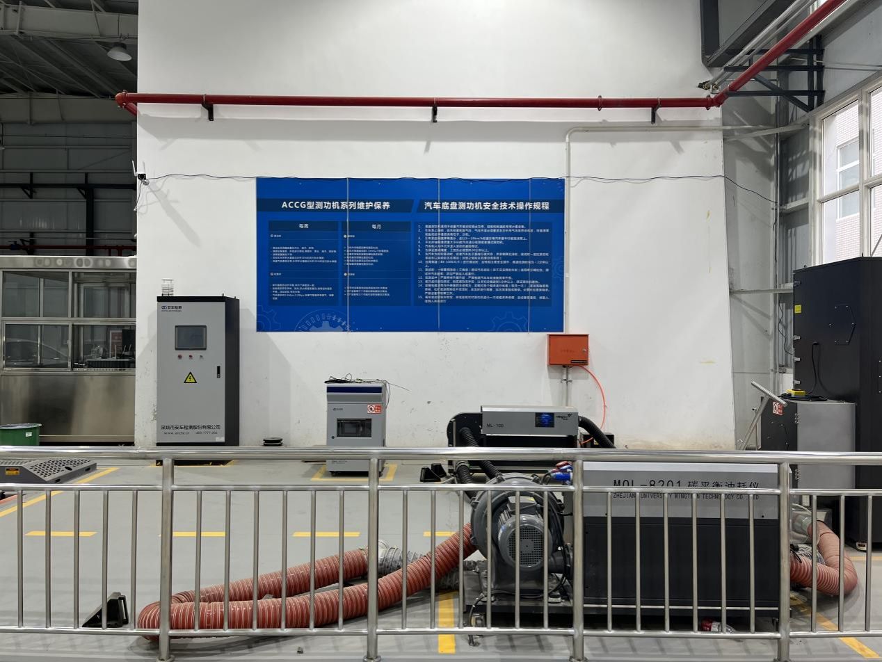 汽车性能与检测实验室建于2009年,占地面积518平方米,仪器设备80余台,总价值220余万元,实验室配有底盘测功机、碳平衡法汽车燃料消耗量检测仪、转向力角测量仪、踏板力计、拉力仪、轮速传感仪、车载显示屏、陀螺仪、车辆动态性能测量传感器等高精度设备。